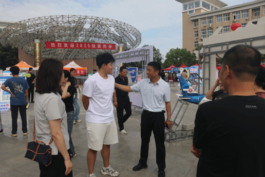 迎新现场,身着统一服装的学生志愿者主动对接新生需求,耐心指引报到流程,协助新生完成物资领取、信息录入等手续;并针对新生及家长关心的校园卡功能使用、宿舍分布与入住须知、食堂区域划分与就餐流程等问题逐一解答,用热情与专业缩短新生适应校园的“过渡期”。